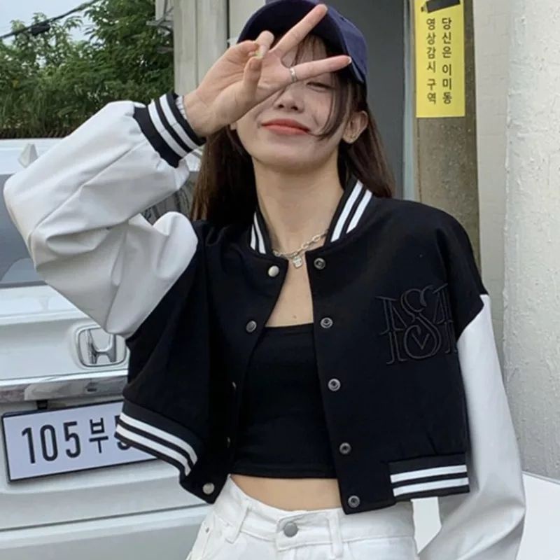Alasan kenapa harus beli COD - Crop Baseball Jacket Varsity Premium Fleece Tebal Outerwear Sweater Wanita Remaja OOTD Korean Style sekarang