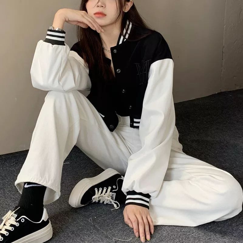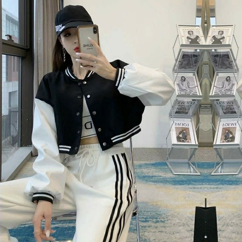 Harga COD - Crop Baseball Jacket Varsity Premium Fleece Tebal Outerwear Sweater Wanita Remaja OOTD Korean Style