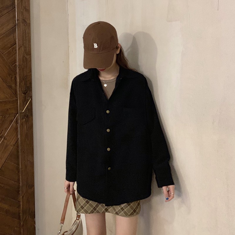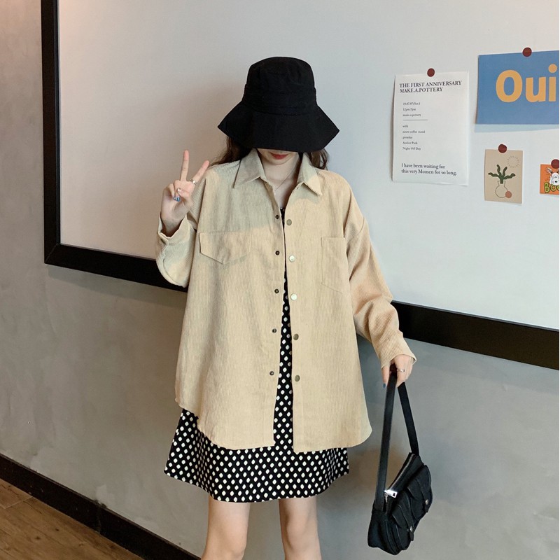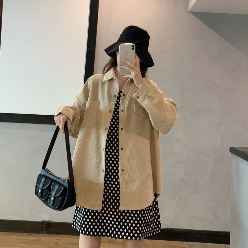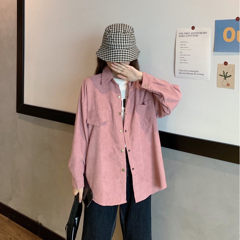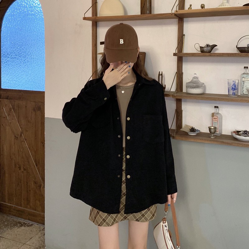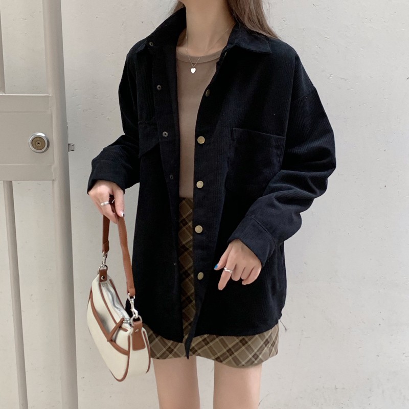 Alasan kenapa harus beli Basic Corduroy Outer Blus fashion kemeja lengan panjang longgar setengah panjang gaya Korea baru sekarang