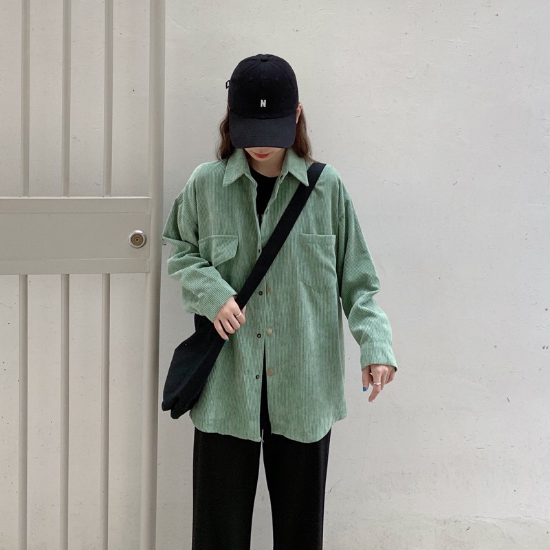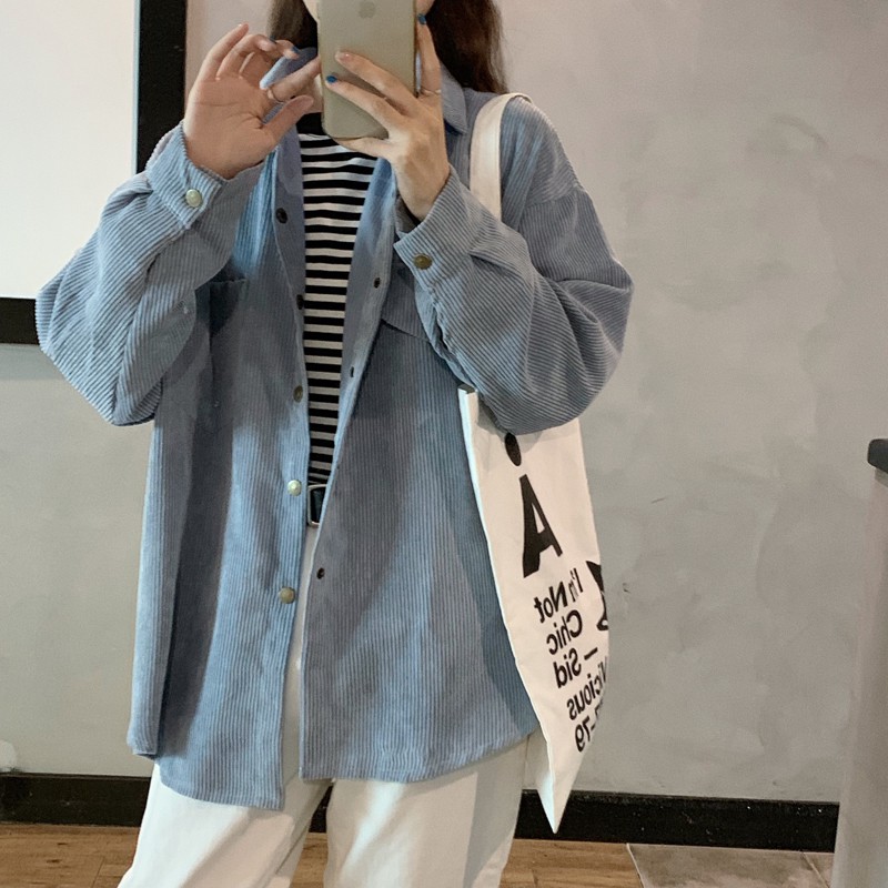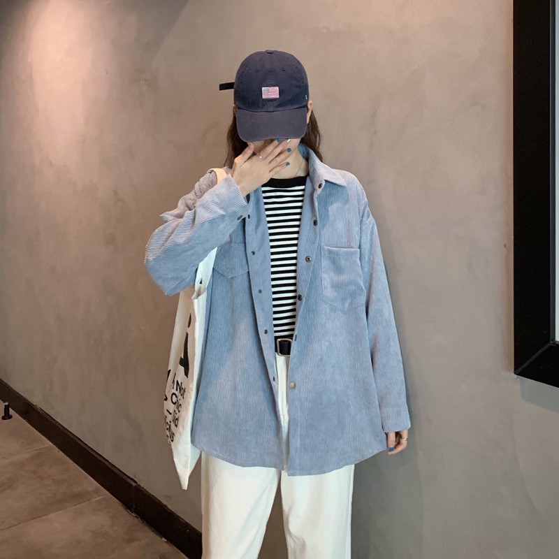 Kelebihan - Kelebihan membeli Basic Corduroy Outer Blus fashion kemeja lengan panjang longgar setengah panjang gaya Korea baru di Toko ini