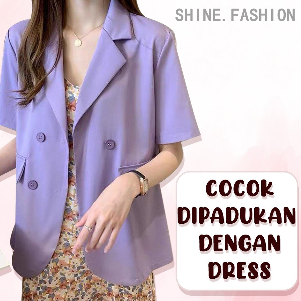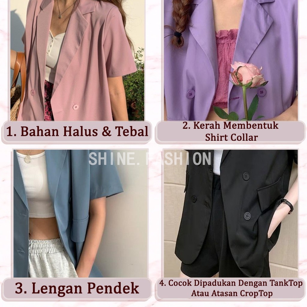 Kelebihan - Kelebihan membeli Blazer Korea Wanita Lengan Pendek Outerwear Potongan Longgar Warna Solid 3121D di Toko ini