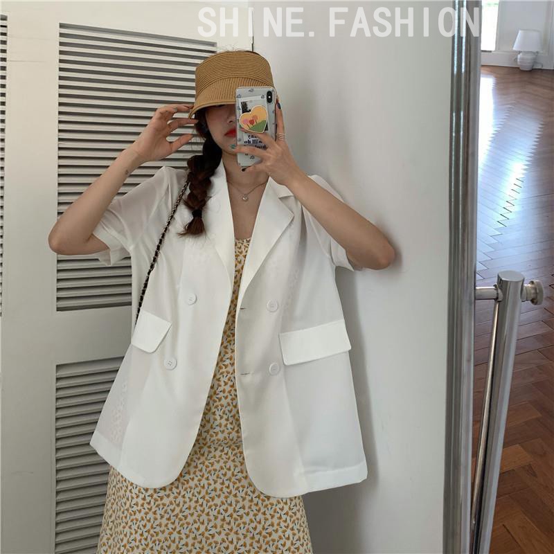 Kekurangan - Kekurangan membeli Blazer Korea Wanita Lengan Pendek Outerwear Potongan Longgar Warna Solid 3121D di Toko ini