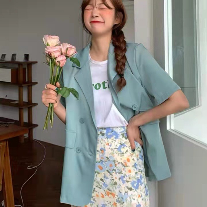 Alasan kenapa harus beli Blazer Korea Wanita Lengan Pendek Outerwear Potongan Longgar Warna Solid 3121D sekarang