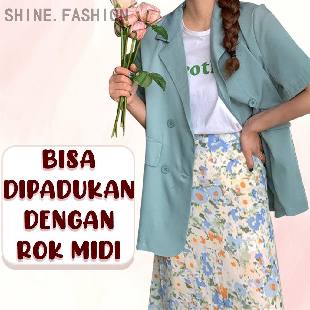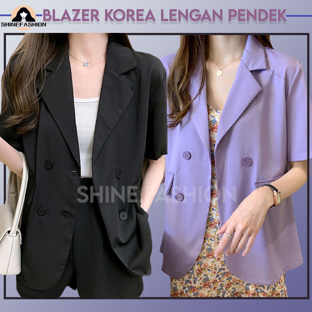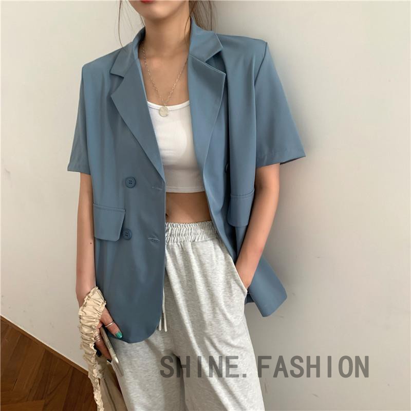 Harga Blazer Korea Wanita Lengan Pendek Outerwear Potongan Longgar Warna Solid 3121D