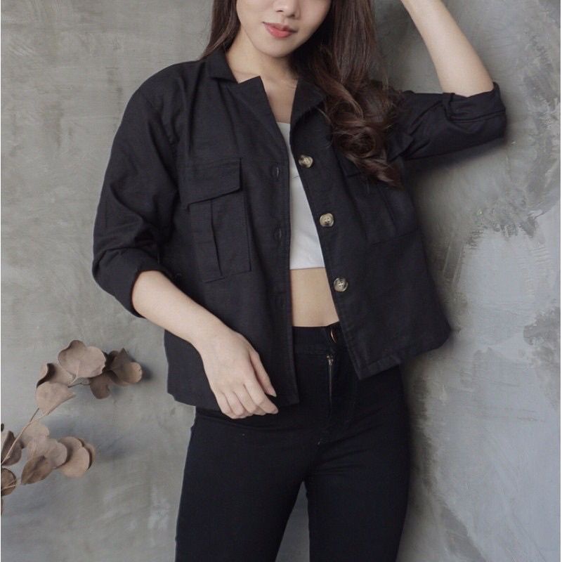 Claryn linen Outer Crop kekinian//Outer Kemeja Basic Shirt Linen Rami terbaru