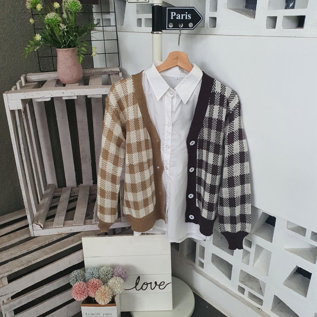 Kardigan Rajut COLLOUR COMBINE Outer Wanita - Korean Style Terbaru