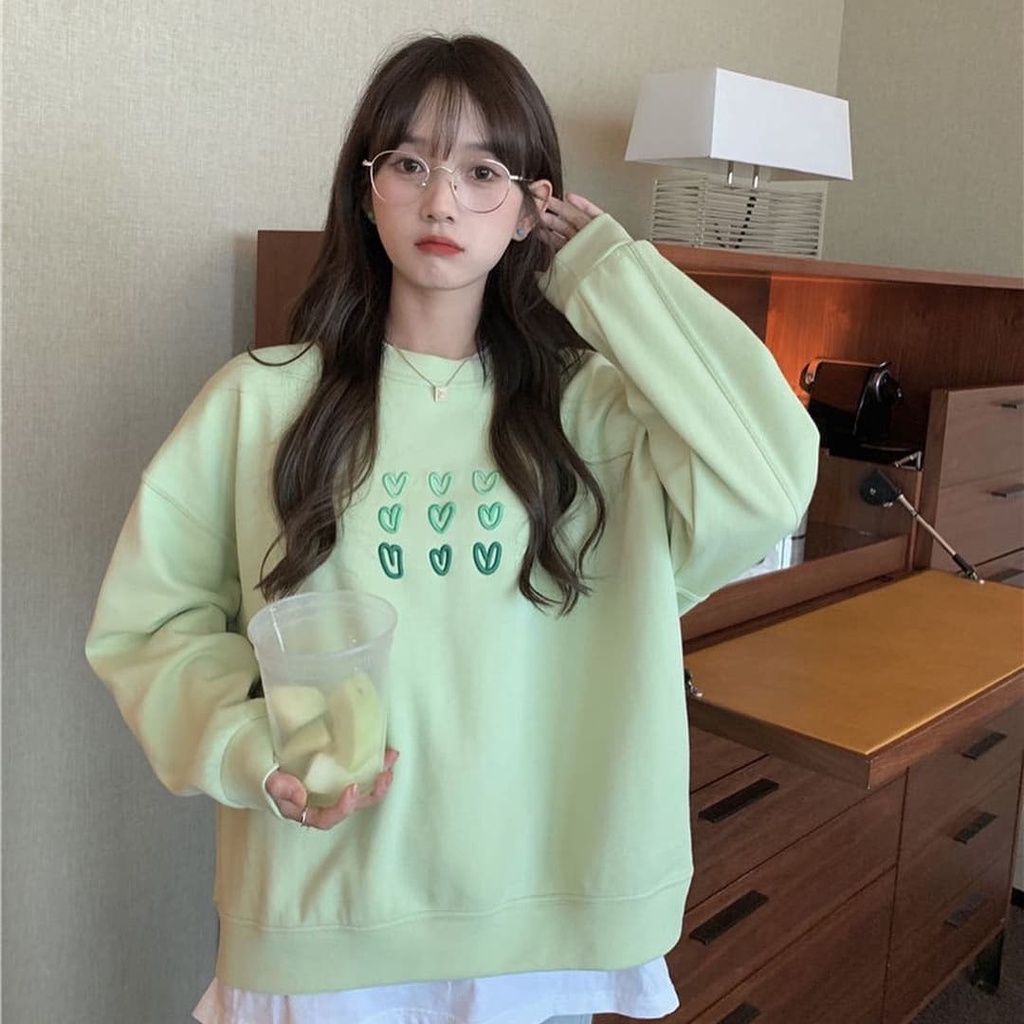 Kekurangan - Kekurangan membeli COD - Nami Lovi Sweater Bordir Fleece Tebal Outerwear Oversize Crewneck Wanita Remaja Korean Style OOTD Premium di Toko ini